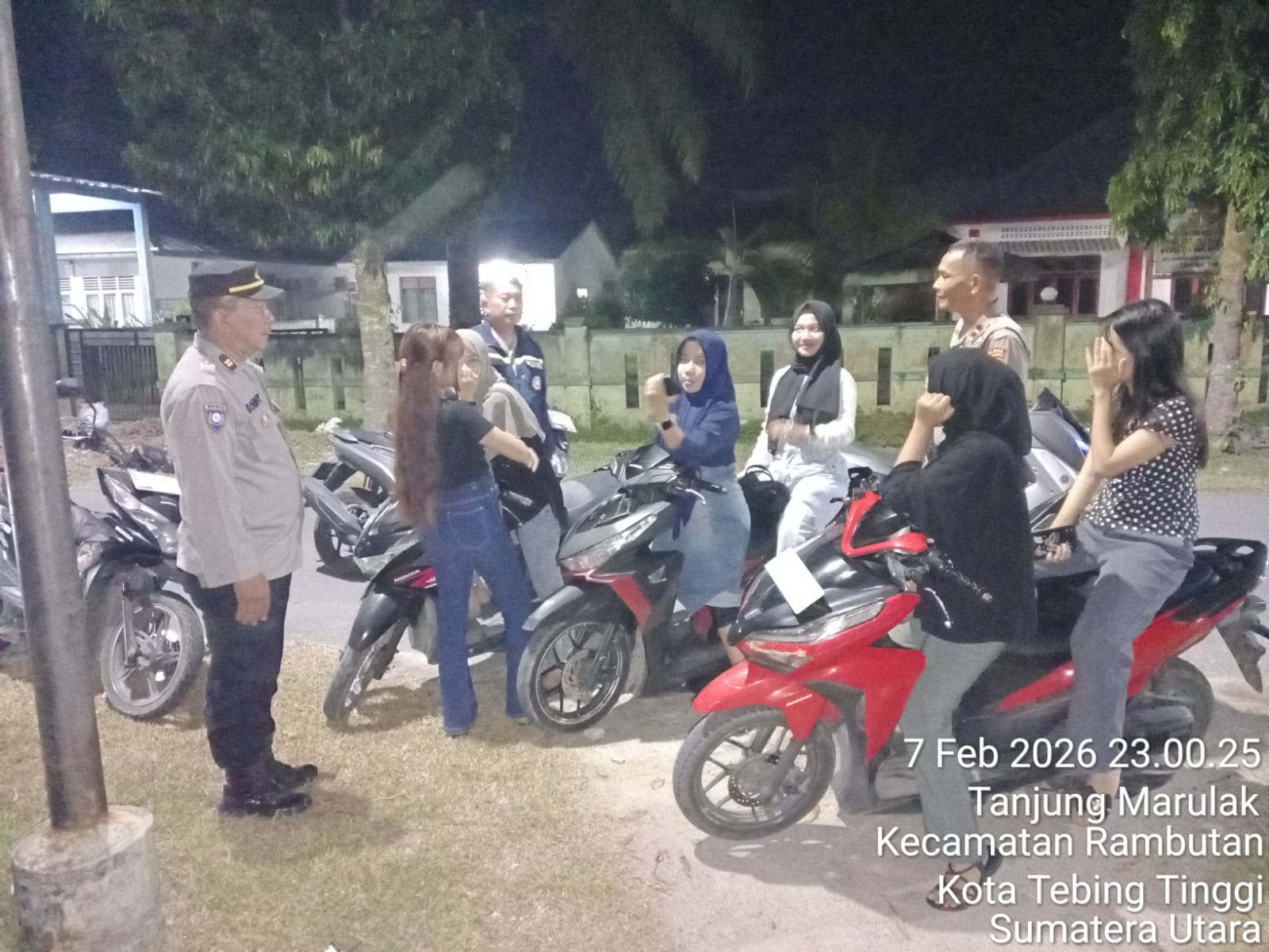 Dalam rangka mencegah tawuran geng motor dan balap liar, Polsek Rambutan melaksanakan patroli bersinggungan dengan Polsek Tebing tinggi di perbatasan wilayah hukum Polsek Rambutan, Sabtu malam (7/2/2026) pukul 22.00 WIB hingga selesai.