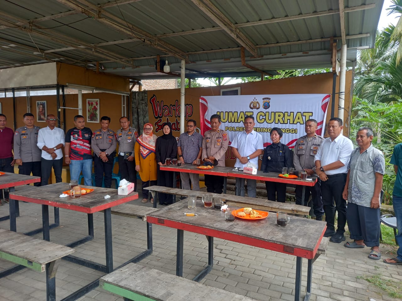 Kapolres Tebing tinggi AKBP Rina Frillya, SIK yang diwakili Kasat Reskrim AKP Budi Sihombing, SH melaksanakan kegiatan Jumat Curhat di Warkop Sehati Jalan Gatot Subroto Lingkungan 2 Kelurahan Pabatu Kecamatan Padang Hulu Kota Tebing tinggi, Jumat (30/1/2026).