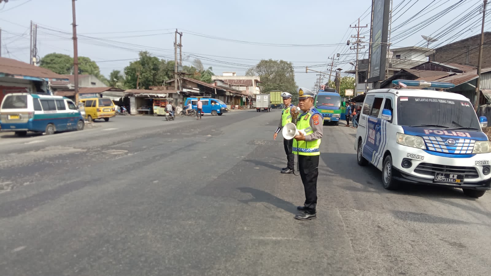 Unit Kamsel Sat Lantas Polres Tebing tinggi bersama anggota Sat Lantas menggelar kegiatan Pendidikan Masyarakat (Dikmas) Lalu Lintas dan Pembinaan Penyuluhan (Binluh) kepada masyarakat pengguna jalan yang melintas di ruas jalan seputar Kota Tebing tinggi, Minggu (25/1/2026).